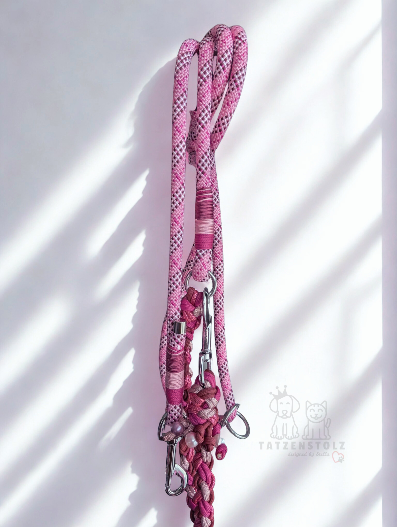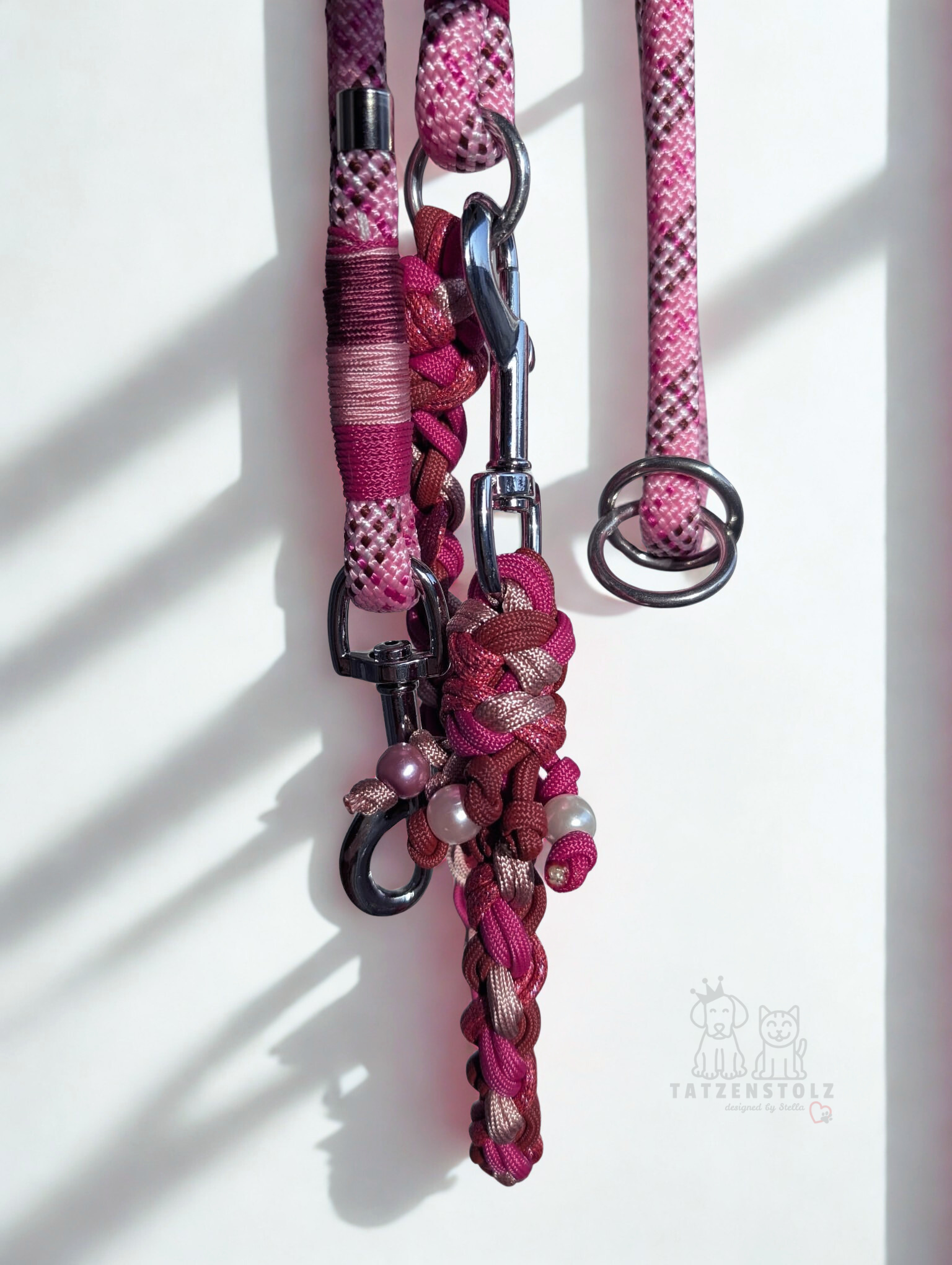 Ein handgefertigtes Lieblingsstück in Beere, Rosa und Fuchsia — für alle, die ihrer Fellnase nicht einfach nur eine Leine schenken möchten, sondern etwas, das Liebe, Stil und Besonderheit ausstrahlt.