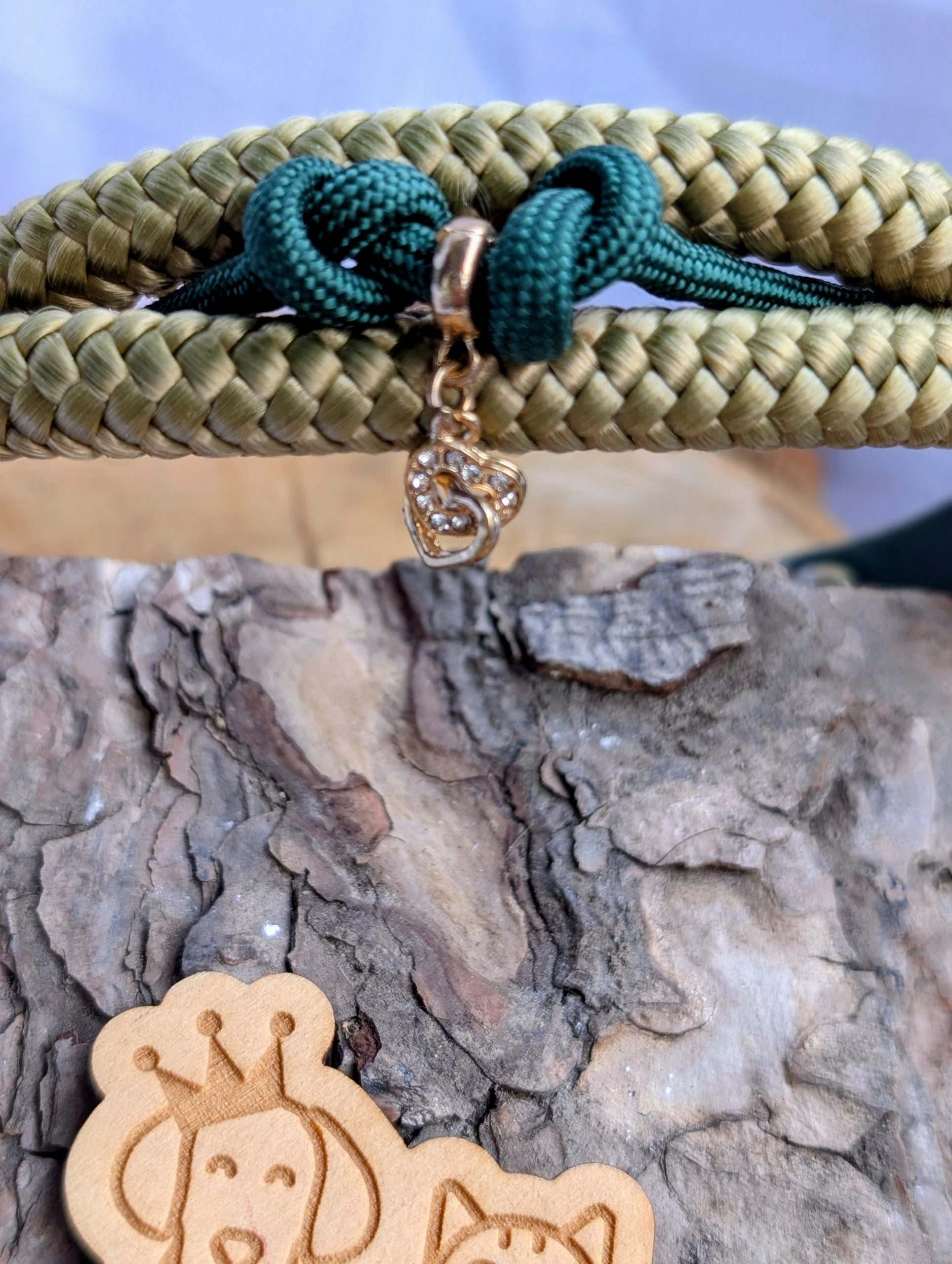 ✨ Elegantes Tauhalsband in Olive/Gold mit hochwertigem grünem Fettleder-Zugstopp.
